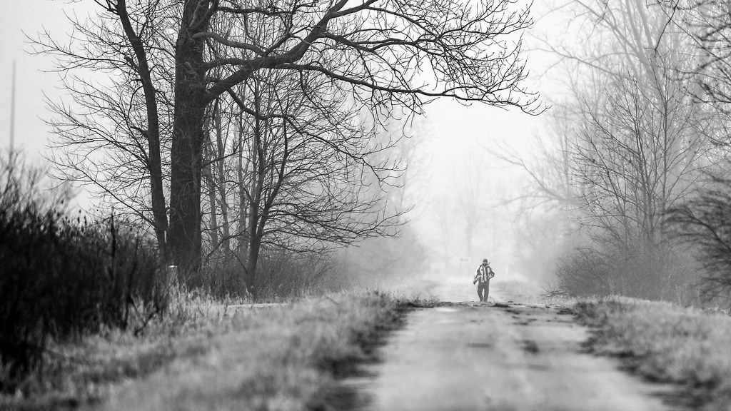 The dawn breaks in a soft, silvered hush, where the fog swallows the horizon and transforms the sunrise into a ghost of gold. There is a quiet joy in this—a world blurred at the edges, waiting to be born.